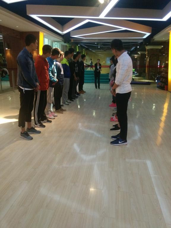 研发部总经理赵俊龙、人力资源部总监吴洁,担任实习领队,带领这23名同学。他们的实习岗位是塑宝迪健身俱乐部6家店面的私教、会籍岗位。实习生要进行岗前7天培训,学习专业知识和工作规范,为到岗工作打好基础。