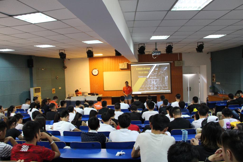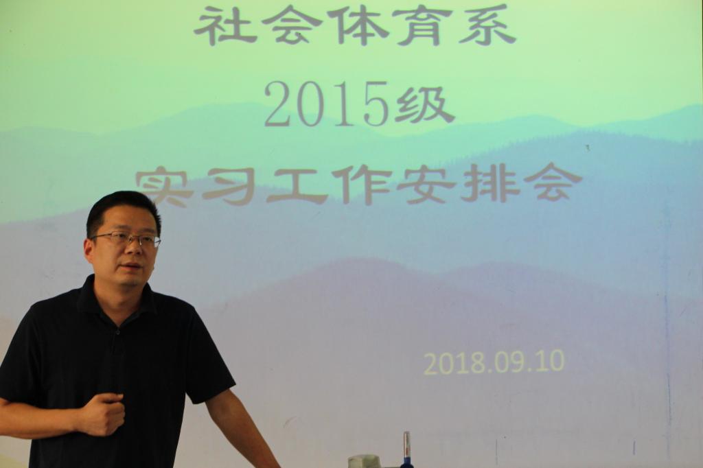 又到一年实习季,2018年9月10日下午3点、11日上午9点,社会体育系2015级实习工作安排暨实习单位双选会,先后在综合楼406教室和教学楼二楼阶梯教室召开。系领导出席会议并强调了实习工作要求以及安全等问题。塑宝迪健身文化有限公司经理赵俊龙、人事经理吴洁,世嘉健身集团人事主管经理范亚丽等参加会议,介绍了各自公司的现状和发展前景。会后举行了双选实习岗位双选,本周三,实习生将奔赴各自实习岗位。