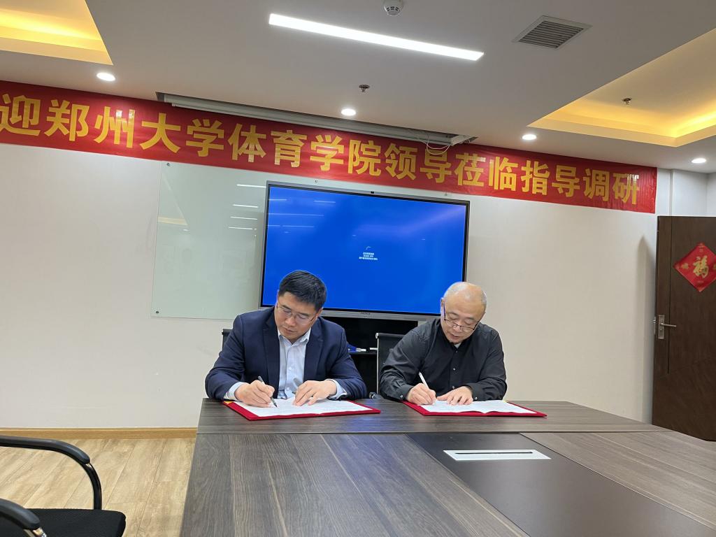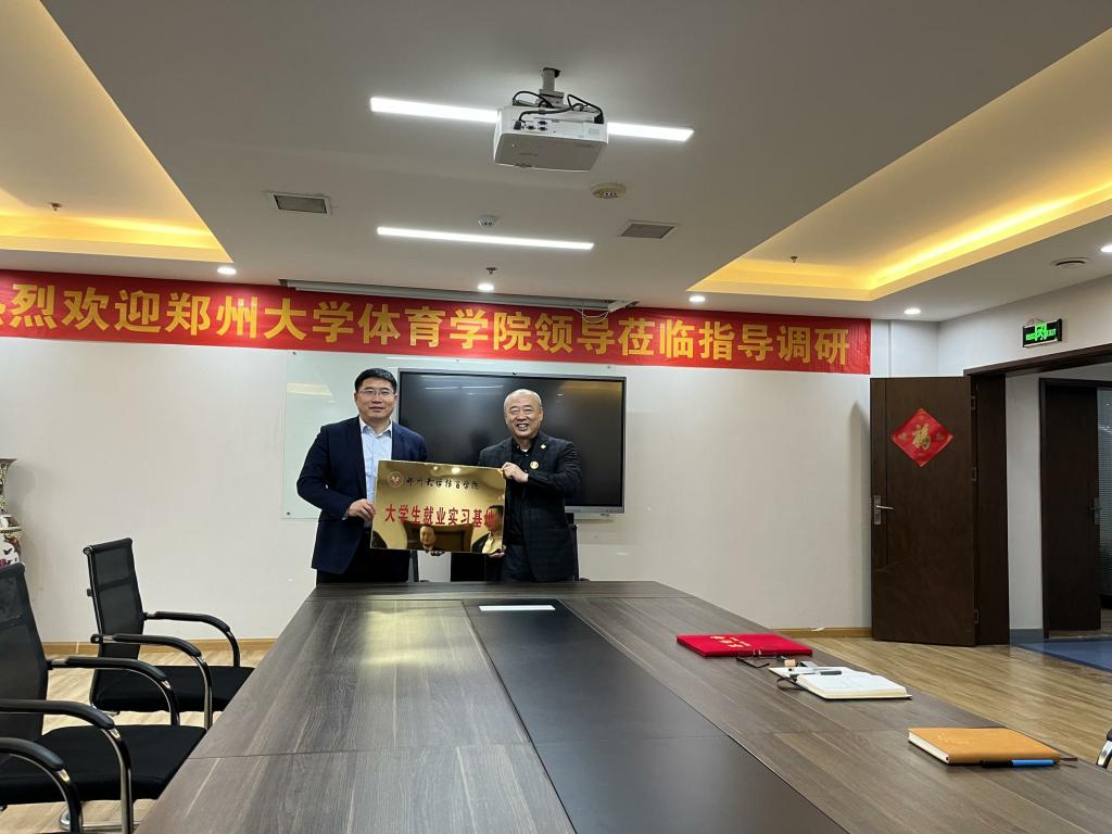 最后,双方就校企合作达成共识,并签订了协议。张院长为郑州市黄金时代科技健康产业有限公司授予了“郑州大学体育学院大学生就业实习基地”牌。