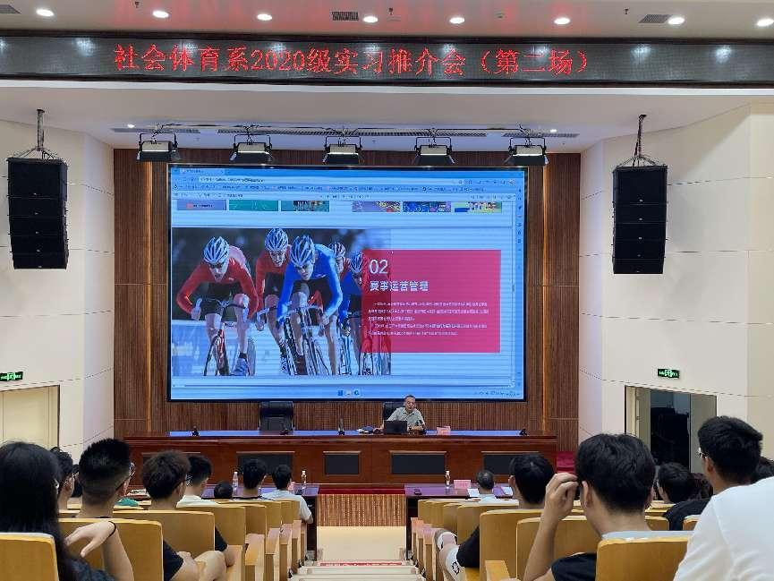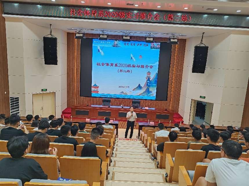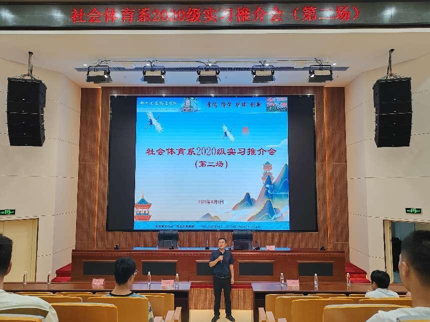 9月5日下午,社会体育系在学院图文信息楼负一楼报告厅召开第二场实习推介会,会议由系副书记、副主任杨强同志主持,系党总支王豪杰书记、芦金峰主任、各推介单位负责人及2024届全体学生参加。
