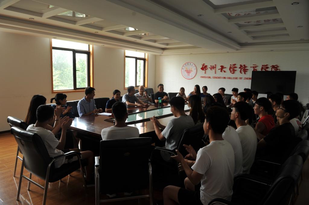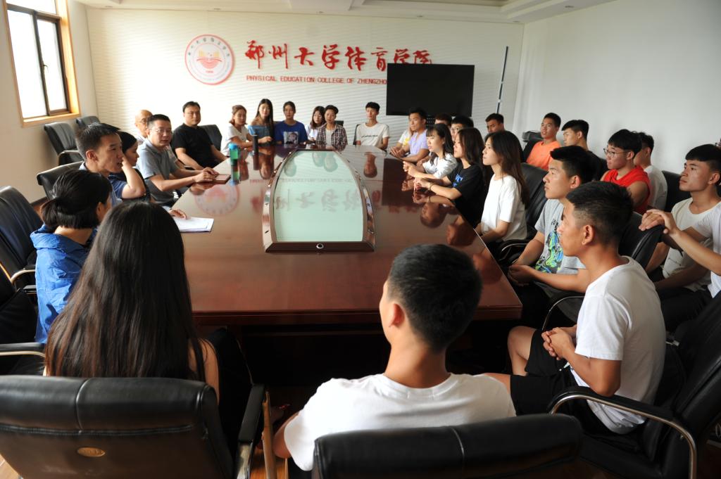 为深入了解2017级社体专业学生的学习、生活和思想现状,做好升入高年级后的学生管理工作,2018年6月25日,系领导班子成员深入登封校区调研,并与2017级社体专业全体班干部进行座谈。