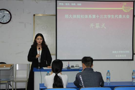 2018年9月20日18时30分,社会体育系在综合楼306教室召开了第十三次学生代表大会,此次学代会得到了院团委和社会体育系党总支的大力支持。系党总支书记李杰、系团总支书记胡孝海、系辅导员党阳、王远方到会参加,院团委及各系代表发来贺信祝此次大会圆满成功。会议在第十三届团总支副书记王欢同学的主持下进行,到会的人员还有16、17级学生代表90余人。