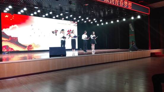 我系自接到活动通知以后,系里领导高度重视,经过层层考虑、筛选,最终确定参演节目为诗歌朗诵《法制中国梦》。此节目由辅导员党阳担任指导老师,14社体1班学生王文豪主持节目编制。经过朗诵诗稿的创作,演出人员的选定,配乐、背景的编排,最终确定由14级学生文歌,倪冰,乔闪闪,闫凯伦4人作为代表参加此次活动。