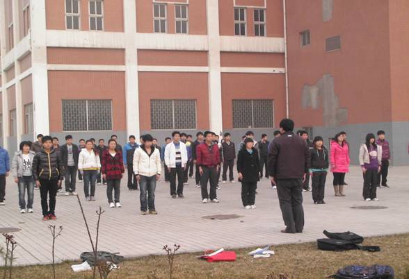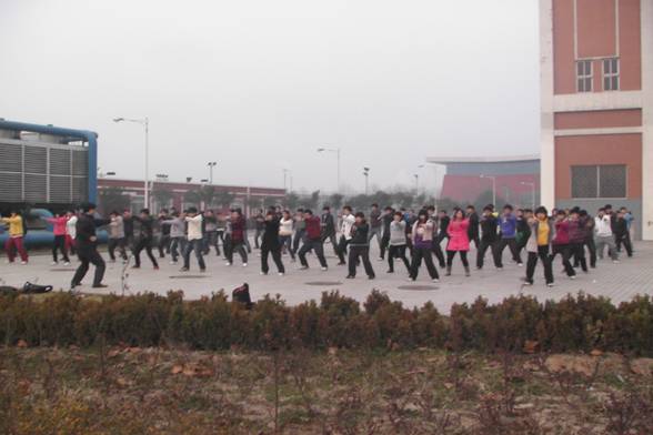 我系辅导员杨强老师指导同学进行阳光体育锻炼