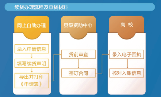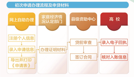 生源地信用助学贷款按年度申请、审批和发放。学生在新学期开始前,向户籍所在县(市、区)的学生资助管理中心提出贷款申请。县级学生资助管理中心负责对学生提交的申请进行资格初审。金融机构负责最终审批并发放贷款。