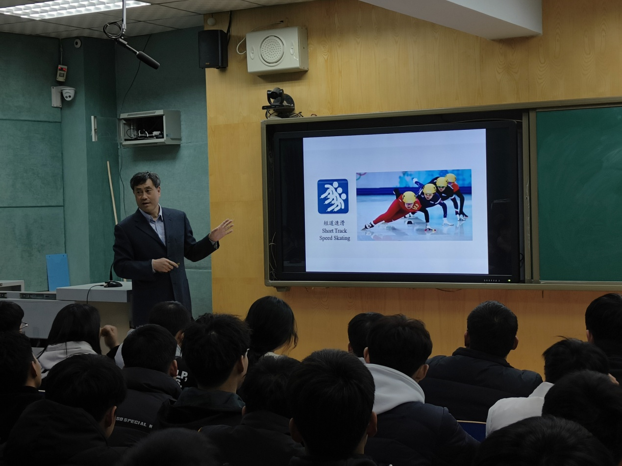 张原副院长从世界冰雪运动的发展及格局、冰雪运动项目介绍、我国竞技冰雪运动的发展、北京冬奥会有关情况、我省冰雪运动发展回顾与展望五个方面讲授了冰雪运动的发展历程及展望,并结合优秀运动员的成长经历和社会经济发展进行了生动有趣的授课。
