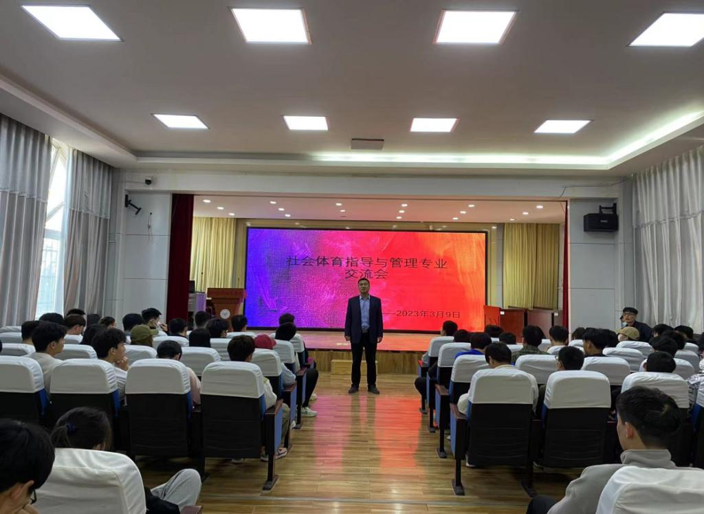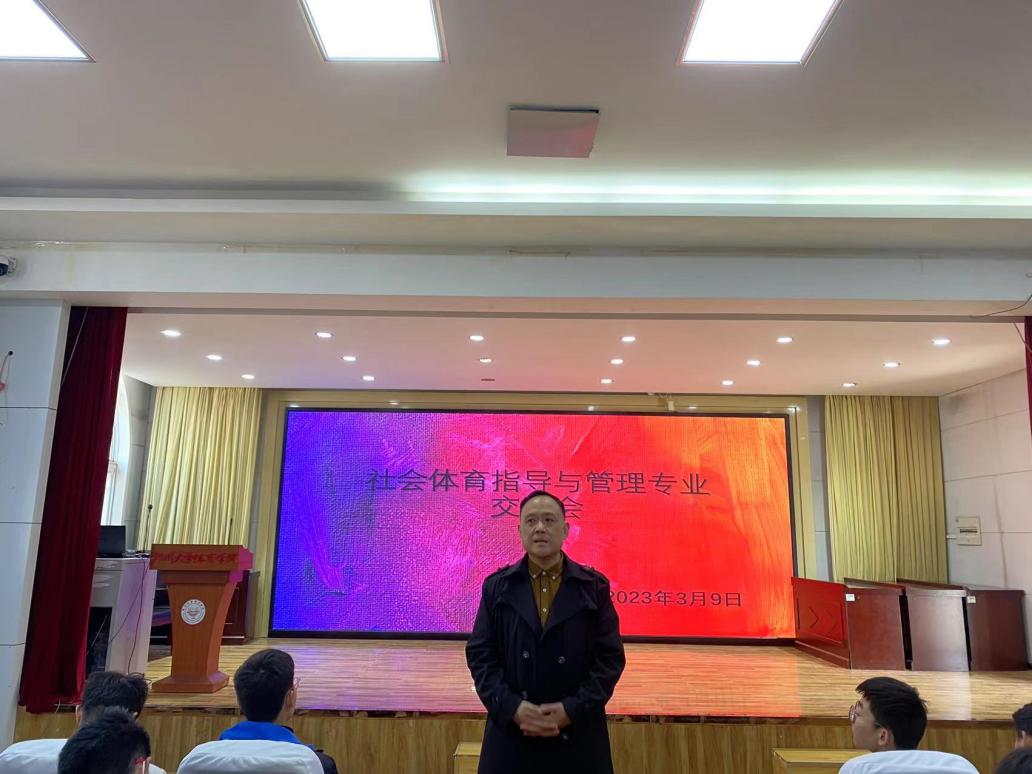 为提高2022级社会体育指导与管理专业新生对专业的认知,明确学习目标,增强学习动力,2023年3月9日中午,在登封校区教学楼一楼阶梯教室召开了社会体育指导与管理专业交流会。会议由党阳老师主持。