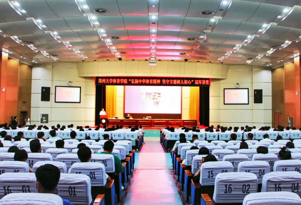 5月17日晚,经社体系党总支精心筹备,郑州大学体育学院“弘扬中华体育精神 坚守立德树人初心”冠军讲堂第二期在院学术报告厅顺利开讲。学院省太极拳队教练、两届世界武术锦标赛冠军、中华人民共和国体育运动荣誉奖章获得者马建超担任主讲,院党委组织部、团委、学生处、社会体育系的负责同志和老师以及各系数百名学生代表共同聆听了讲座。