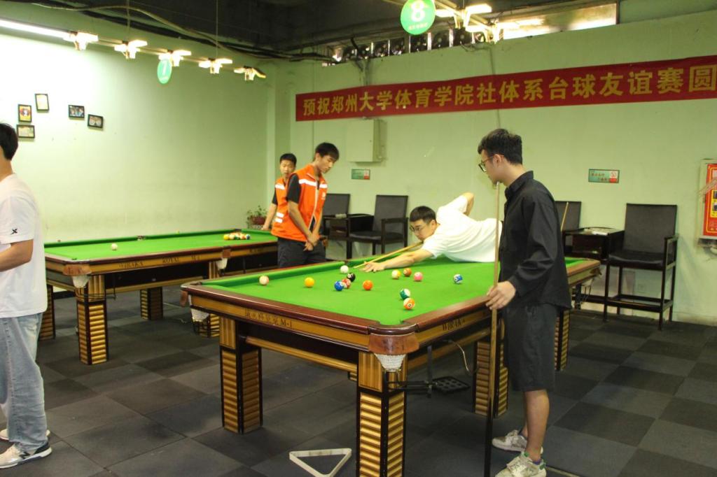 为丰富学生业余生活,拓宽学生技能以及探索就业新方向,6月5日中午,社会体育系在餐厅楼下地下“乔氏台球厅”举办了社体系台球友谊赛比赛。此次比赛由赞助商体院乔氏台球和社会体育系学生会组织,2020级30名学生参加比赛。比赛使用中式台球比赛规则,采取三局两胜淘汰制,通过抽签比赛决出前八名,颁与证书和奖品。