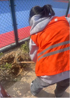 在接受专业人员培训指导后,系志愿者明确分工,紧密合作。挖坑、栽植、回填、覆土、保墒等步骤有条不紊,高质量地完成了植树活动。
