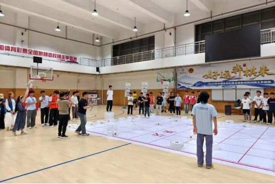 比赛采取选手站在棋盘两侧发出指令,由志愿者按指令挪动棋子进行比赛的形式,现场还设置了体彩及象棋文化元素,调动了学生的参与乐趣。赛场上,选手们时而凝神思考,时而大声发出指令,楚河汉界间尽显智慧交锋。