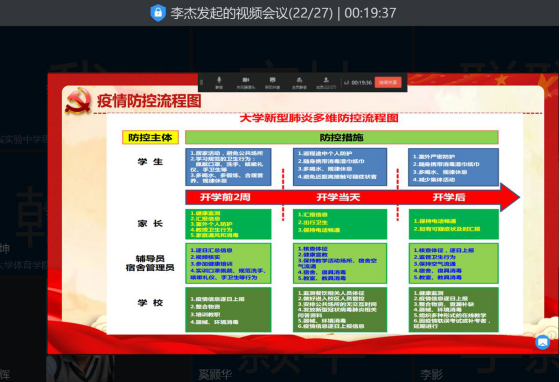为在打赢新冠肺炎疫情防控阻击战中更好地发挥党支部战斗堡垒作用和党员先锋模范作用,社会体育系按照省体育局机关党委《关于开展“学讲话、担使命、战疫情、作表率”主题党日活动的通知》要求,结合部门实际,鉴于此病毒传染性强且目前疫情防控到了最吃紧的阶段,为了能够及时传达落实上级党委文件精神,我系教师支部于3月6日下午16时采用钉钉视频会议形式,集中开展了“学讲话、担使命、战疫情、作表率”主题党日活动。会议由社会体育系党总支书记李杰主持。
