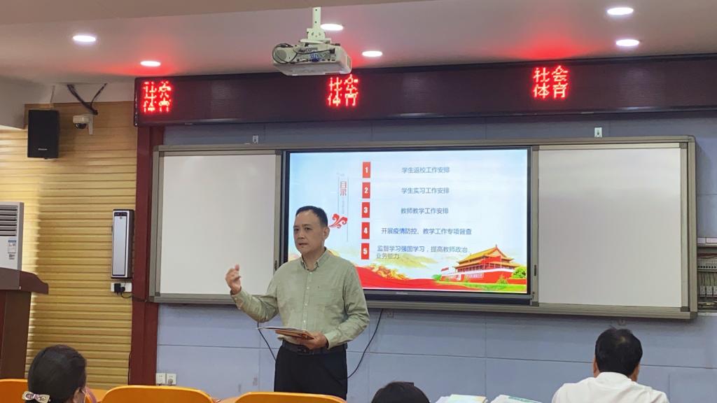 9月1日上午,社会体育系2022年秋季学期首次全体教职工大会在教学楼304室召开,社会体育系党总支副书记杨强主持会议,系主任芦金峰主讲。
