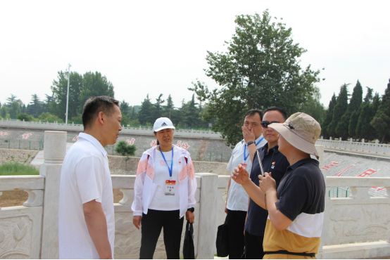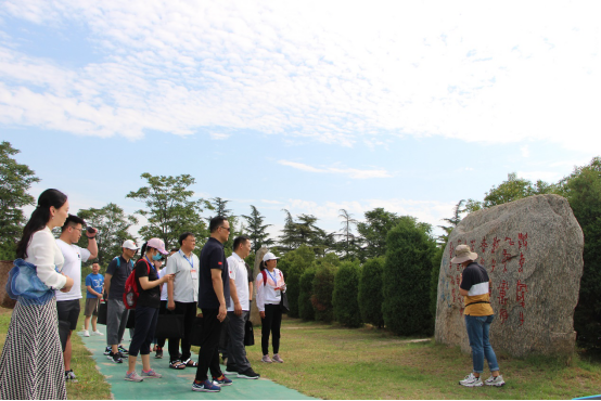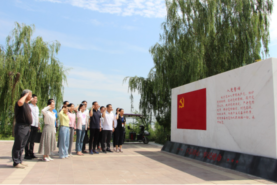 炎炎烈日下,讲解员小王带领学员漫步于546.4米的河韵碑林,领略了祖国传统书法、碑刻文化后,集体到1938年扒口处、花园口记事广场学习近代以来黄河水患与治理。1938年,为了阻滞日本侵略者的机械化部队,当时的国民政府决定“以水代兵”,在郑州花园口扒开大堤,人为造成了一次大洪灾,然而面对真相,矗立在广场西侧国民党的石碑上硬生生把人为的“掘堤”写成“决堤”,通过讲解员对广场东西两座碑亭的比较,广大党员无不愤慨于国民党政权这种掩盖历史真相的春秋笔法。