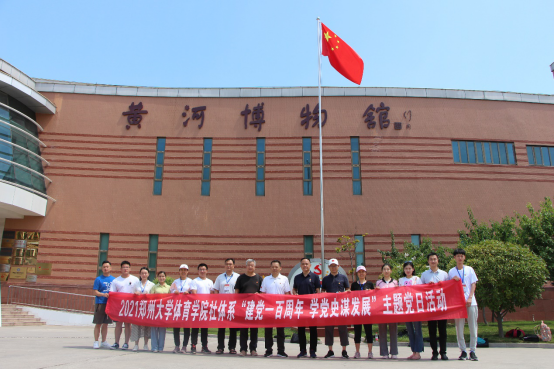 “黄河之水天上来,奔流到海不复回。”黄河是中华民族的摇篮,千百年来,浩浩黄河水,同长江一起,哺育了中华民族,孕育了灿烂辉煌的中华文明。历史上,“河”曾是黄河的专称。自夏至宋,黄河流域作为政治、经济、文化中心的时间长达3000多年,分布有郑州、西安、洛阳、开封、安阳等古都。黄河百折不挠、一往无前,塑造了中华民族刚健有为、自强不息的民族品格,是中华民族的重要象征、中华民族精神的重要标志。近代以来,国弱民穷的中国,黄河水患频仍,给人民带来了巨大灾难。新中国成立以来,在党的领导下,黄河安澜,国泰民安。在纪念建党一百周年之际,为实现“学史明理、学史增信、学史崇德、学史力行”,6月19日,社会体育系教师支部组织党员到1938年扒口处、黄河博物馆等处参观学习。