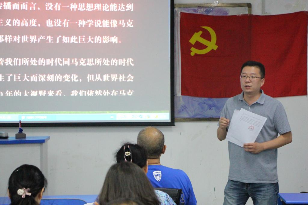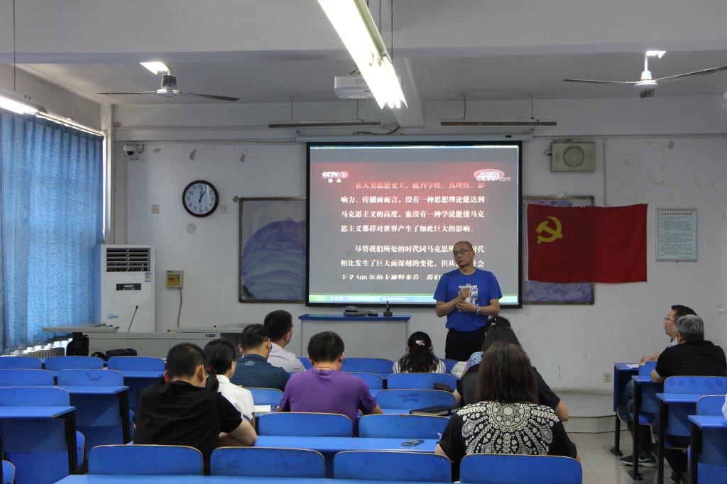 全体党员集体观看了央视纪录片《不朽的马克思》选集《资本论诞生150余年影响世界》、《马克思预言中华民族必将重新崛起》的片段。随后党总支李杰书记宣读了习近平总书记讲话中关于马克思主义历史地位的论述。最后,教师支部王东亚书记对活动进行总结,要求全体党员深刻认识马克思主义的科学性、真理性、预见性,不断增强“四个意识”,坚定“四个自信”,把习近平总书记重要讲话精神转化为推动工作的强大动力。