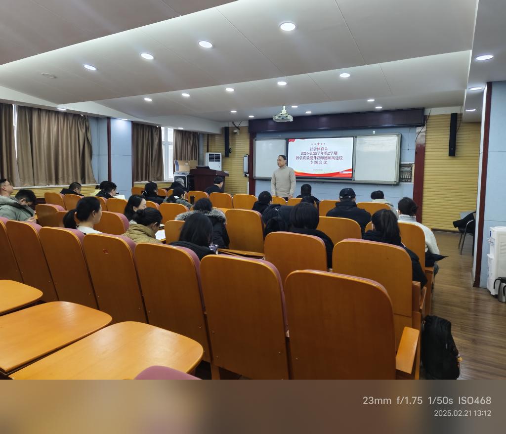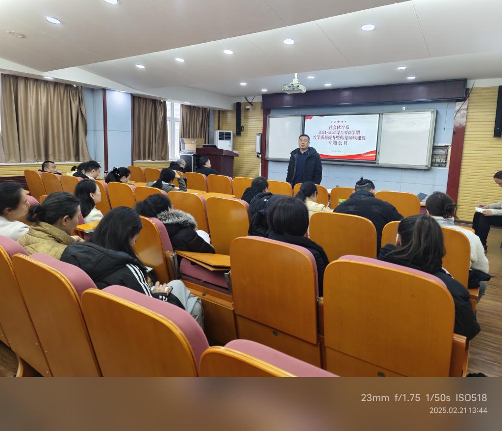 2月21日中午,社会体育系在教学楼304召开专题会议,同步推进2024-2025学年第2学期教学质量提升、师德师风建设及“以案促改”警示教育工作。活动中,系党总支纪检委员领学了《高校违反师德师风部分典型案例》,以鲜活案例为教师敲响师德警钟;系党总支书记、系主任分别从学院工作要求、教学事故认定办法维度开展警示教育,深化教师对师德红线的认知;全体教师集体观看了《高校教师师德师风警示视频》,以直观影像强化警示效果。