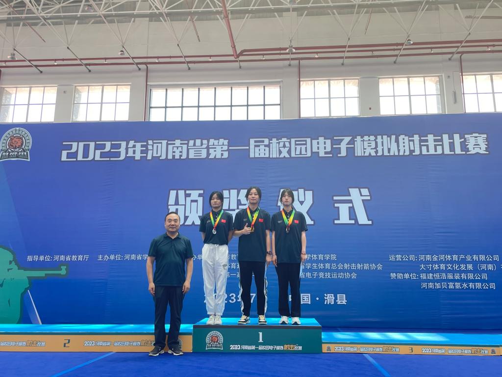 河南省第一届校园电子模拟射击比赛于2023年7月14至7月18日,在滑县第一高级中学举行,全省大中小学共511名在校生参赛。学院党委书记、河南省学生体育总会副主席张绍通代表河南省学生体育总会在开幕式发表讲话,学院党委副书记刘丹宁、教育厅及比赛承办方领导参加开幕式,中国奥运首金获得者许海峰先生莅临开幕式并宣布比赛开幕。