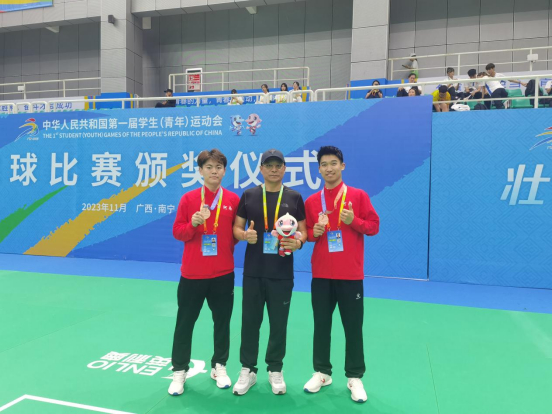 由教育部、国家体育总局、共青团中央共同主办的中华人民共和国第一届学生(青年)运动会(以下简称“学青会”)于2023年11月5日在广西开赛。这是全国青年运动会和全国大学生运动会合并后的首届赛事,由我系张永斌老师执教、2020级社体3班李盛涛担任主力队员的河南省毽球队,在本届“学青会”花毽接力赛取得一枚宝贵的铜牌。