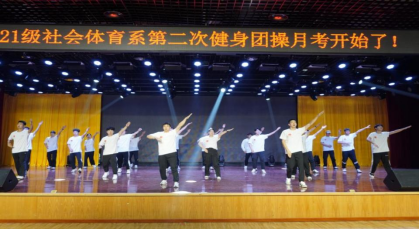 社会体育系于2023年11月22日上午九点在我校大学生活动中心组织“校外团操教练进校园”活动,本次活动由健身团操课教师解远理、柳靖宇共同主持,邀请我系优秀毕业生赵亚楠、刘帅闯、曹国宾回校为大家指导,艺术系主任孙爱景、社体系主任芦金峰出席。