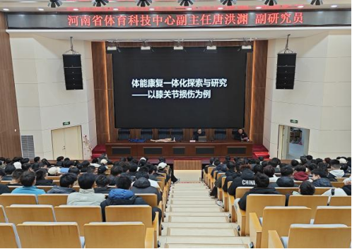 12月12日晚18时,我系在图文信息楼负一层报告厅举行学术讲座,特邀河南省体育科技中心副主任、副研究员唐洪渊主讲,系主任芦金峰主持,社体系所有在校生参加。