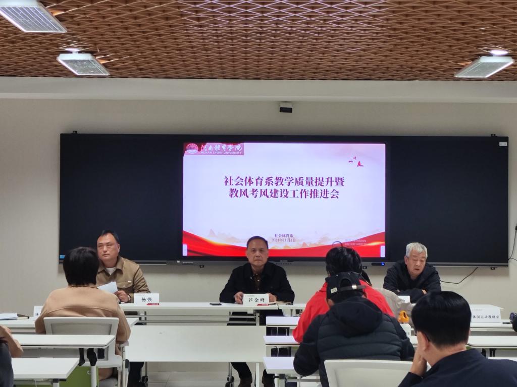 2024年11月1日下午三点,社会体育系在图文信息楼701召开了以“教学质量提升暨考风教风建设”为主题的工作推进会,全体专兼职教师参会。此次会议旨在深化教学改革,提升教学质量,同时加强教风考风建设,为培养更多高素质的体育人才奠定坚实基础。