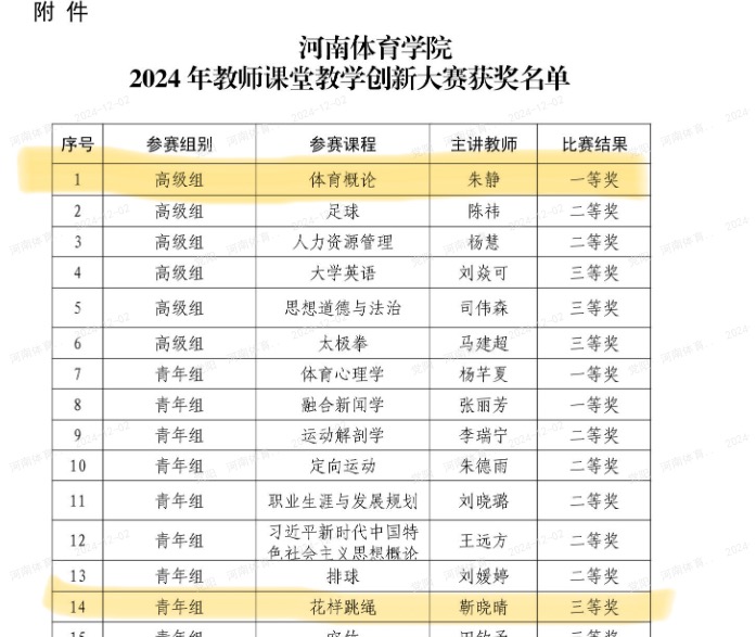 在近期学院公布的2024年教师课堂教学创新大赛获奖名单中,我系朱静老师和靳晓晴老师经过赛前精心准备、赛中出色发挥,经专家组综合评定,最终朱静老师在高级组中荣获唯一一等奖,靳晓晴老师在青年组中荣获三等奖。希望社体系教师以此为契机,结合专业课程的发展与需要,认真落实学院“教育教学质量提升年”精神,凝心聚力,勇于创新,扎实推进和做好各项教学工作。